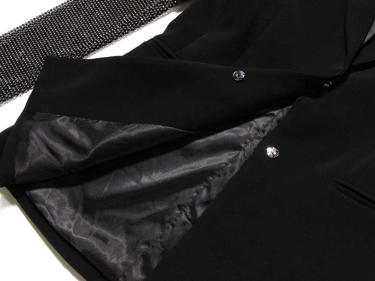 Пожарный костюм с пиджаком для женщин, из кусков, блестящие стразы высокого качества с длинным рукавом пошив босоножки на высоком каблуке Blingbling, модное длинное пальто 2020; Сезон весна-осень
