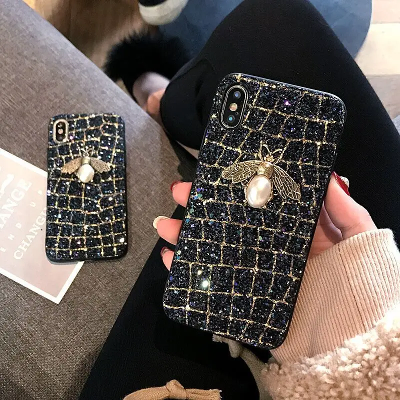 Чехлы для телефонов, аксессуары для iphone 11pro max 11, чехол для iphone xr x xs 6 6s 7 8plus, анти-осенняя блестящая задняя крышка с блестками и Пчелой