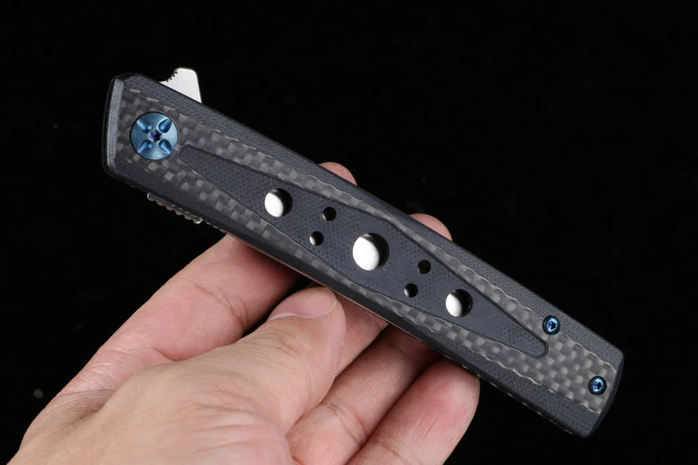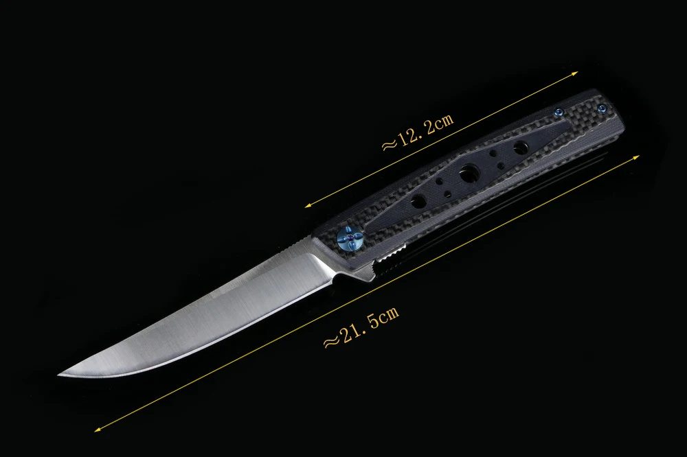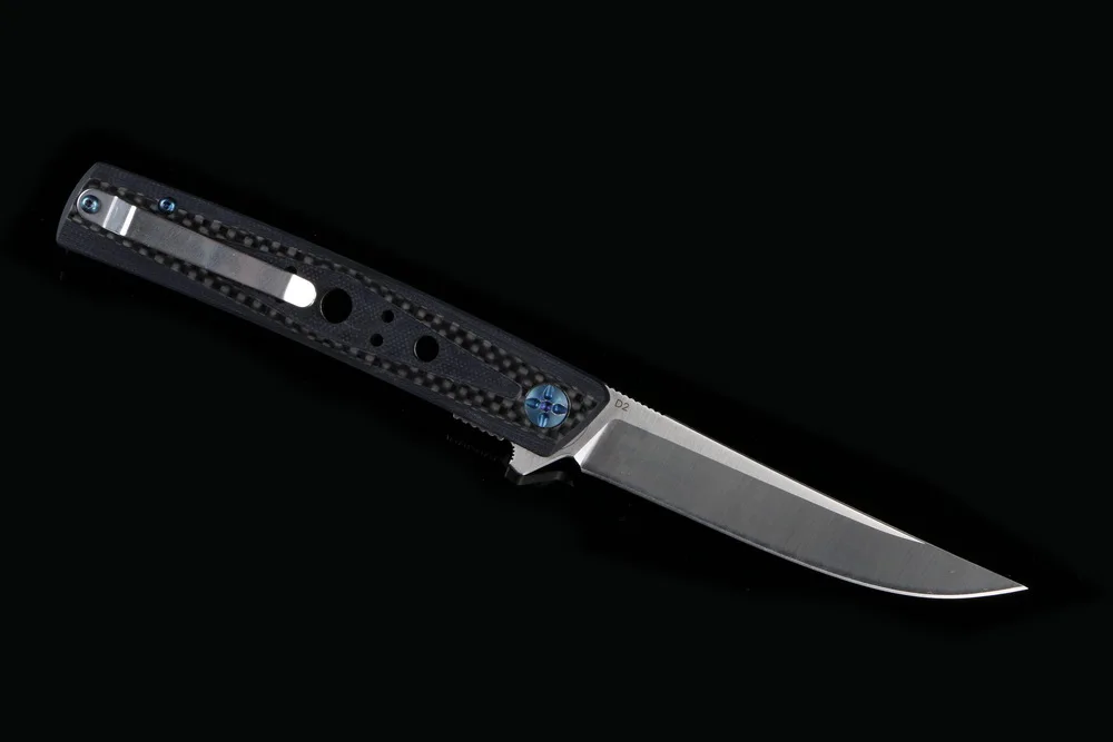 Полная длина: 230 мм Длина лезвия: 98 мм Длина ручки: 130 мм Толщина: 3,6 мм Ширина лезвия: 20 мм Материал лезвия: D2 Материал ручки: углеродное волокно Уровень защиты: 59-60HRC Вес нетто: 116 г Обработка поверхности: сатин Упаковка: черная подарочная коробка
