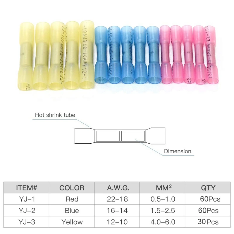 [Полный комплект из 150 предметов] 60 красных (AWG22-18) 60 синих (AWG16-14) 30 желтых (AWG12-10), почините Изношенные провода в кратчайшие сроки! Один комплект-это все, что вам нужно для небольших электрических работ и больших ремонтных работ. 150 термоусадочных трубок, которых достаточно для долгих лет!