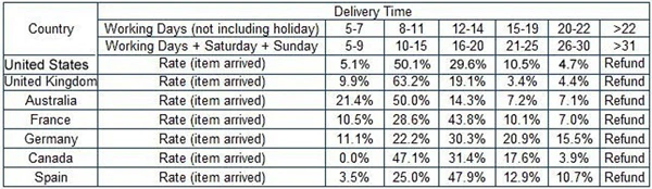 7. Из-за наличия на складе и разницы во времени, мы выберем доставку Вашего товара с нашего первого доступного склада для быстрой доставки.