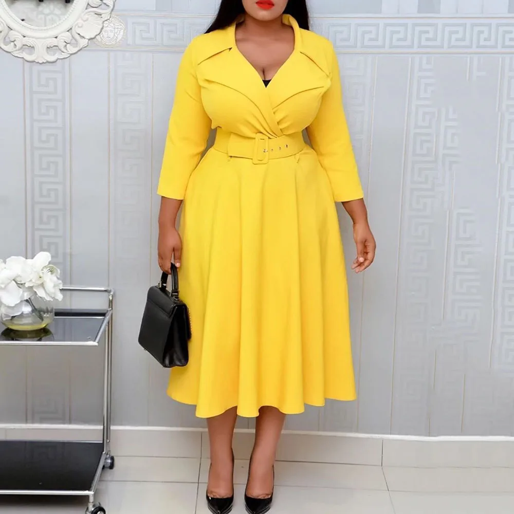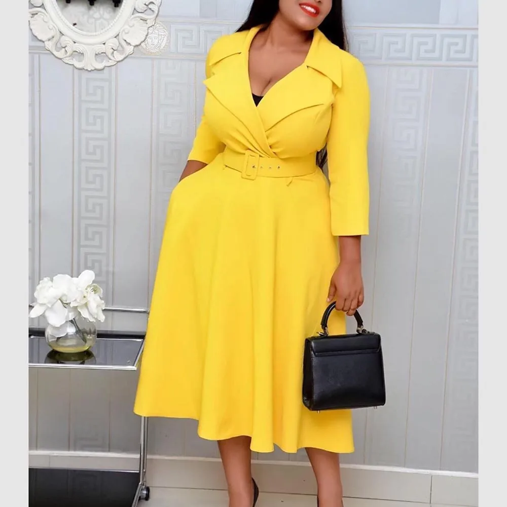 Женское кружевное платье-рубашка с длинным рукавом, элегантное плиссированное платье А-силуэта с высокой талией для офиса, Длинные вечерние платья макси на осень