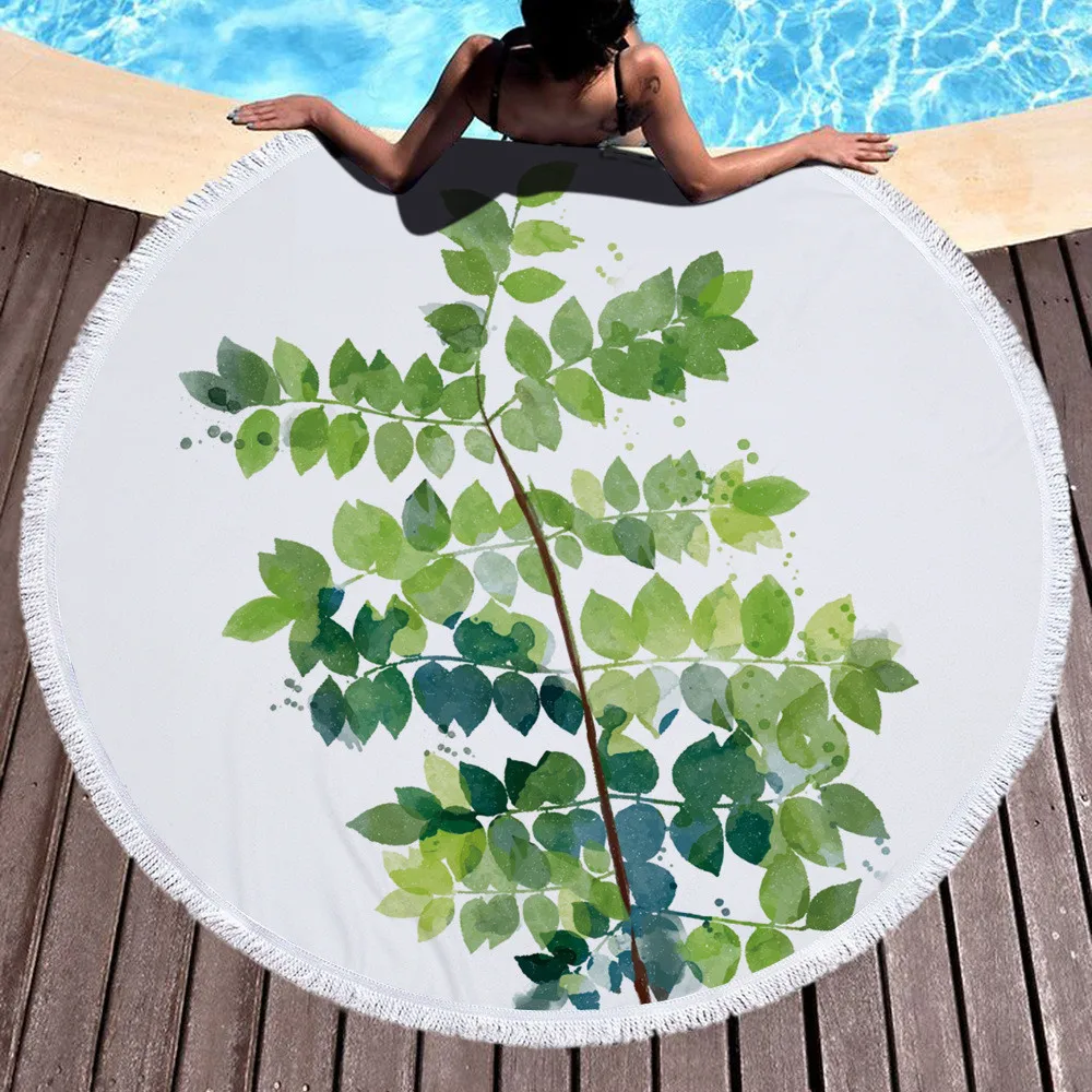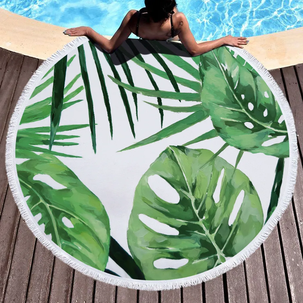 Тропический зеленый Растительный пальмовый лист Monstera цветок круглое пляжное полотенце с кисточками микрофибра пляжное полотенце быстросохнущее пляжное полотенце