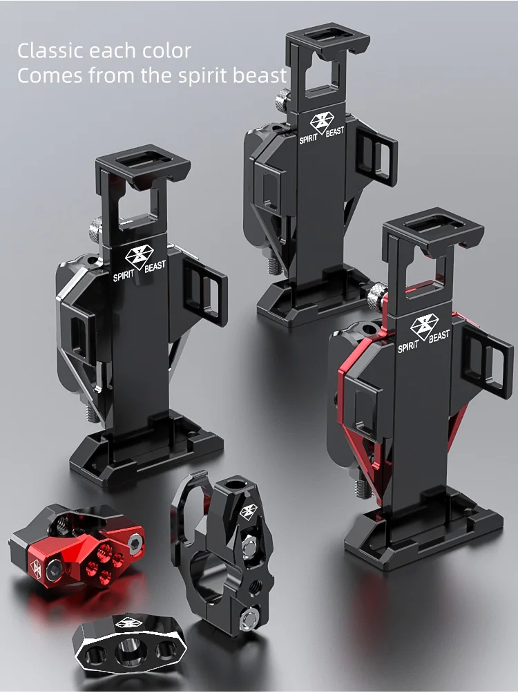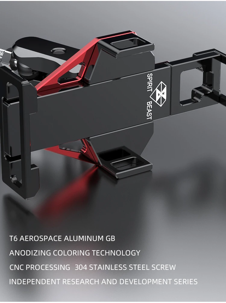 Название продукта: мобильный телефон SPIRIT BEAST Материал: алюминиевый сплав Цвет изделия: серебристый, черный и красный Подходит для: зеркальное сиденье для ортодонтического держателя винта 8 или 10 мм, крепление для ручки смесителя диаметром 22 мм, компрессионный код 32 мм для ручки смесителя диаметром 32 мм, мобильный телефон кронштейн для 4,5-6 дюймов мобильный телефон, этот размер указан только для справки Количество продуктов: один набор Характеристики: алюминиевый сплав T6, с хорошей коррозионной устойчивостью, адекватной твердостью, в сочетании с производством с ЧПУ, окраской гальваническим покрытием, с дизайном крутой формы, что делает автомобиль более заметным, более качественным, вкусом!