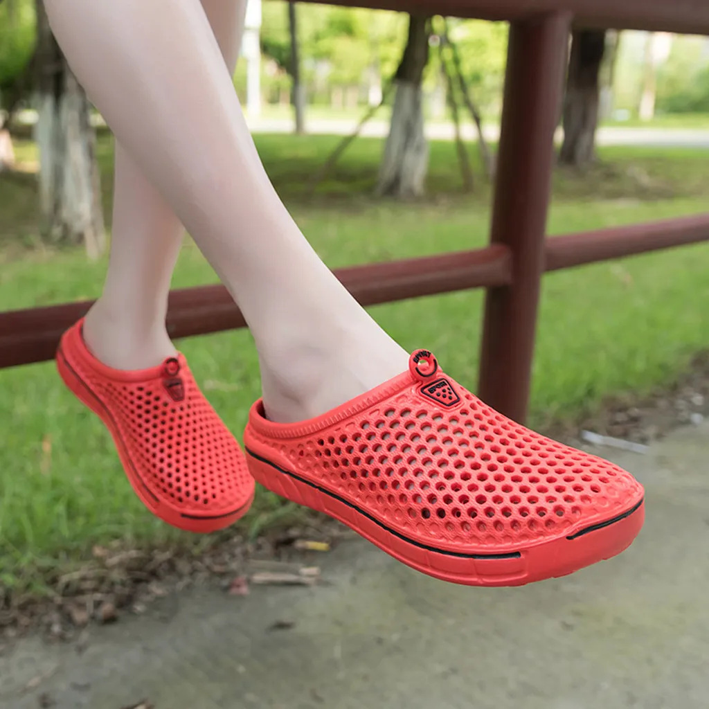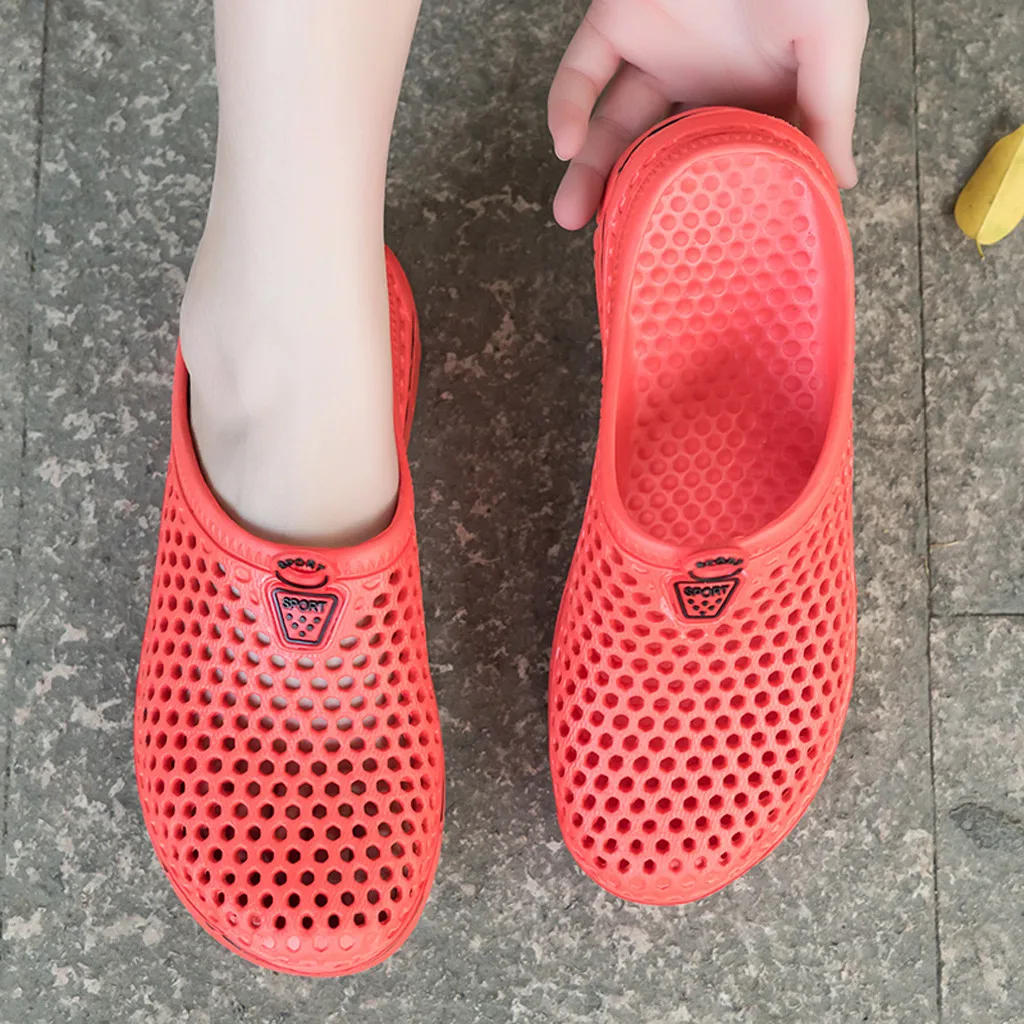Jaycosin 2020; Женские повседневные Сабо; Дышащие пляжные сандалии; Однотонные тапочки с отверстиями; Летние женские шлепанцы без застежки; Домашняя обувь