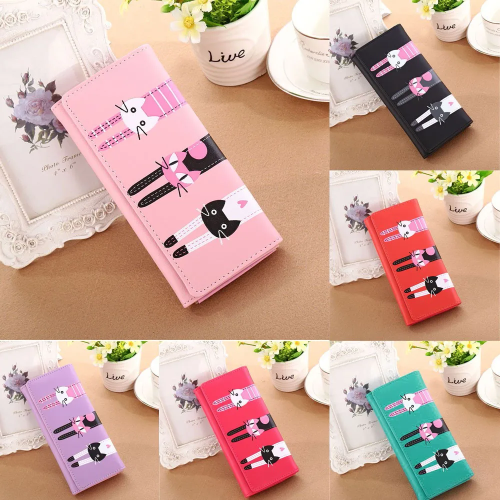 1xДля женщин Длинный кошелек с кошкой для монет и карт(Без Розничная упаковка)