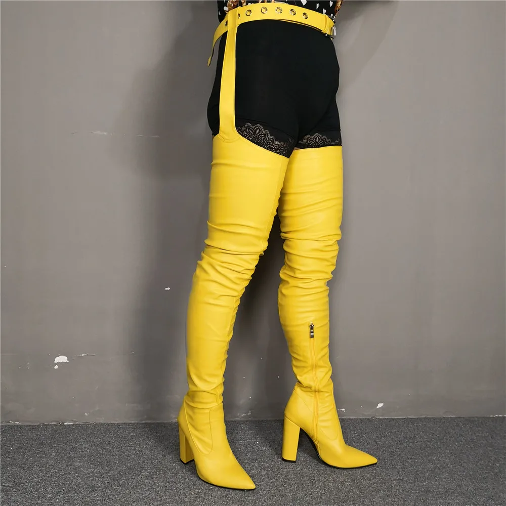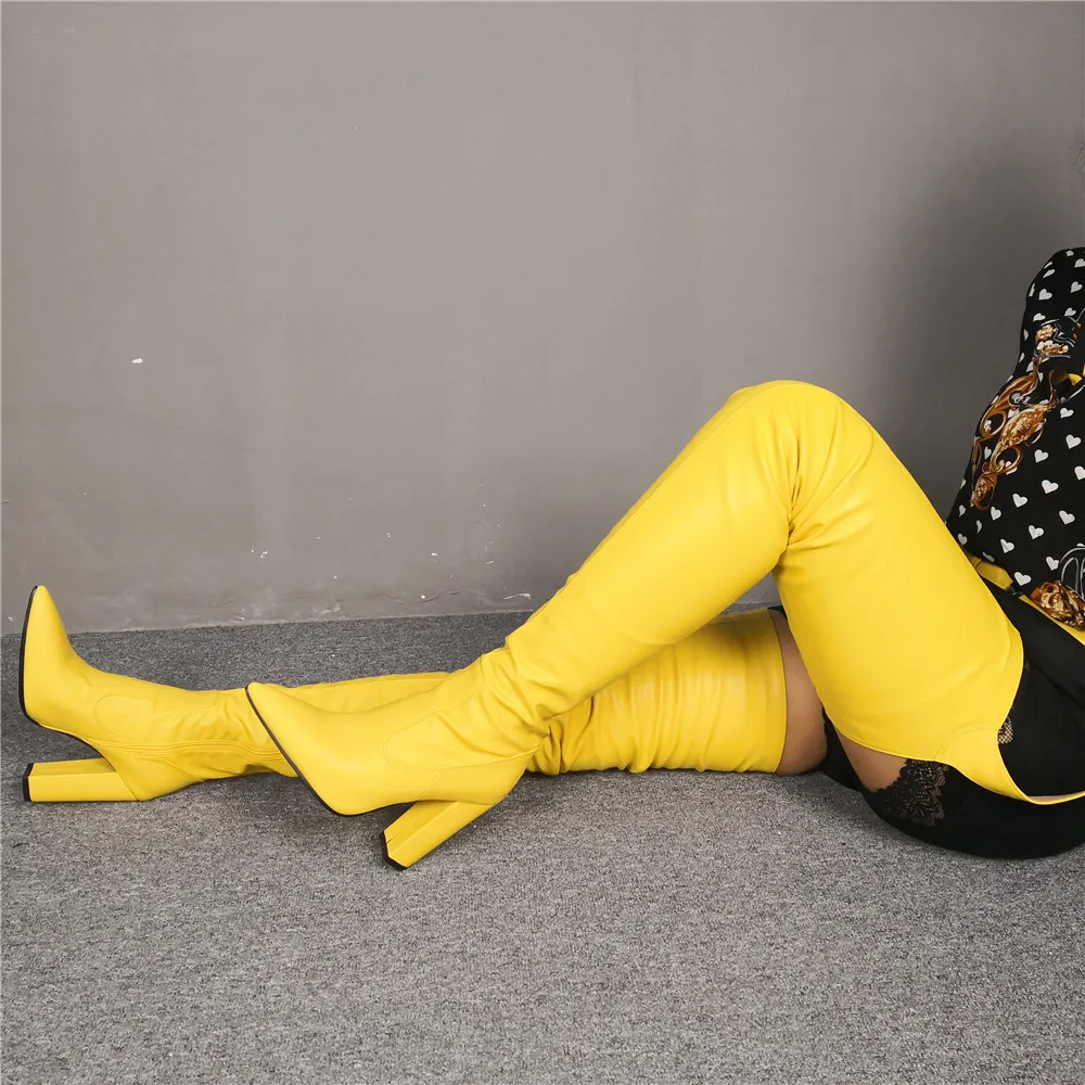 Оригинальное предложение; Новинка; Стильные желтые ботинки со штанами; Женская обувь с острым носком на не сужающемся книзу массивном каблуке; Женская пикантная зимняя обувь; Модная обувь Пожалуйста, используйте нашу таблицу размеров при выборе размера.