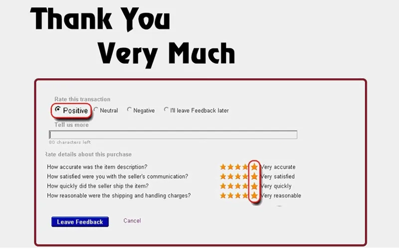 Если вы удовлетворены нашими товарами и обслуживанием, пожалуйста, уделите несколько минут, чтобы оставить положительный отзывы 5