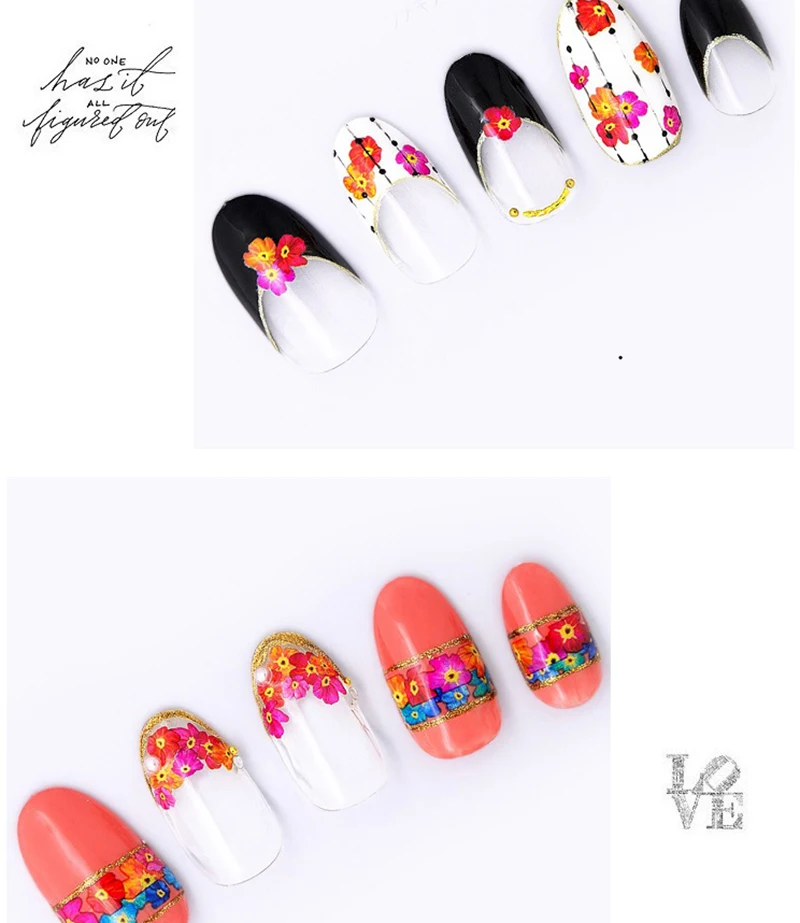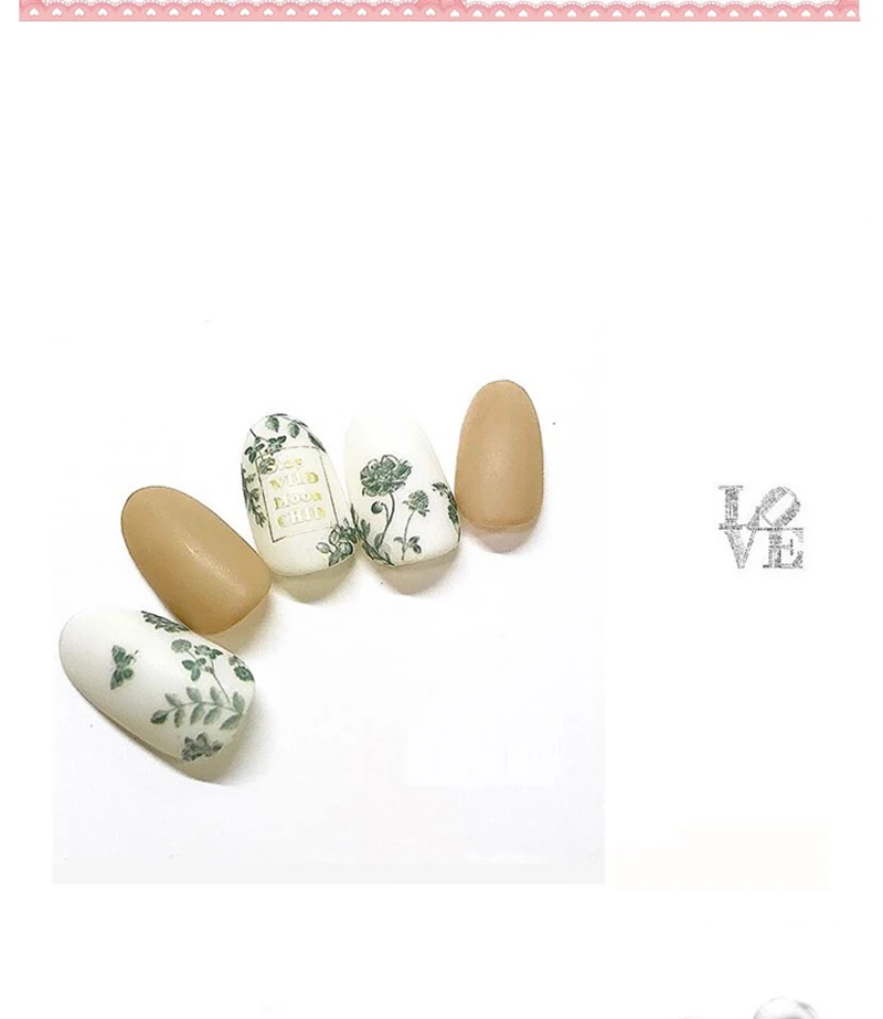 USD 0,73/Шт. Японская серия постепенное изменение наклейки для ногтей наклейки цветущее украшение для ногтей самоклеющиеся Nagel наклейки для ногтей Спецификация: Количество: 1 лист Цвет: как на изображении Посылка: 1 лист 3D наклейки для ногтей Как использовать: 1. Очистите поверхность, где будет размещен дизайн. 2. Выберите дизайн и отклейте гвоздь. (Не прикасайтесь к клею) 3. Поместите дизайн в ноготь/кончик и аккуратно протрите его несколько раз. 4. Нанесите верхнее пальто для лучшего результата. Примечание: Не наносите наклейки на чувствительную кожу. Не рекомендуется для маленьких детей.