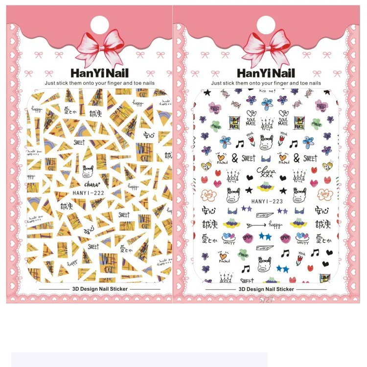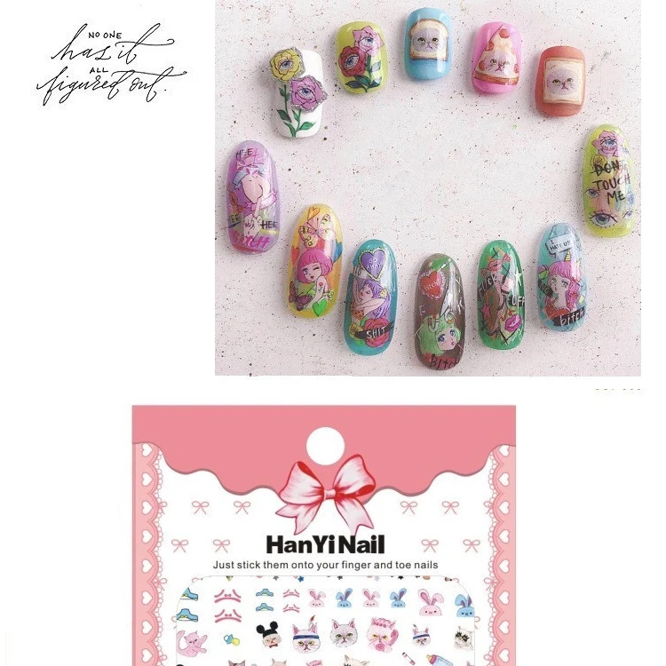 USD 0,69/Шт. 3D стикер для ногтей Кот мультфильм DIY наклейки Советы красивая девушка Маникюр Шарм Дизайн Клей Советы для ногтей Спецификация: Количество: 1 лист Цвет: как на изображении Посылка: 1 лист 3D наклейки для ногтей Как использовать: 1. Очистите поверхность, где будет размещен дизайн. 2. Выберите дизайн и отклейте гвоздь. (Не прикасайтесь к клею) 3. Поместите дизайн в ноготь/кончик и аккуратно протрите его несколько раз. 4. Нанесите верхнее пальто для лучшего результата. Примечание: Не наносите наклейки на чувствительную кожу. Не рекомендуется для маленьких детей.