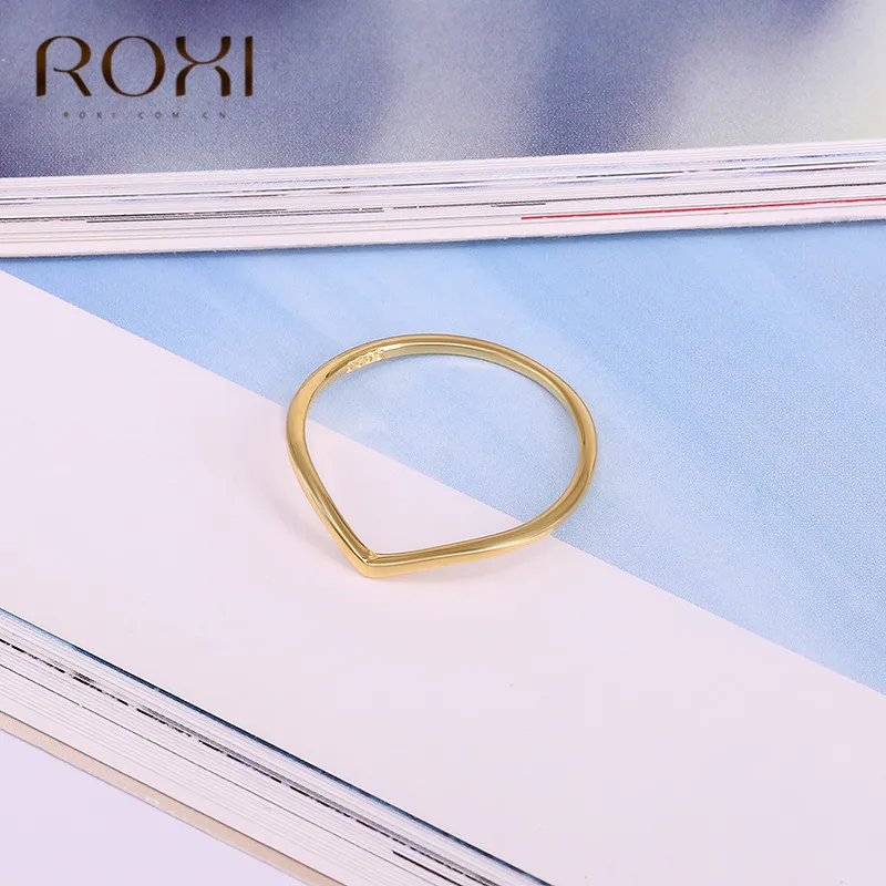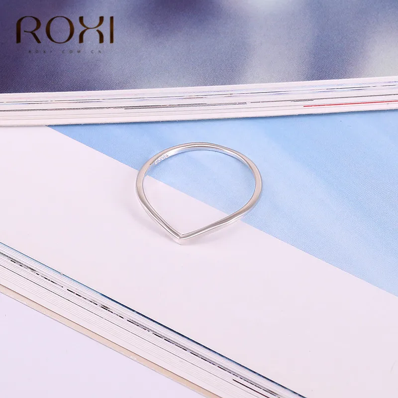 Женские Геометрические кольца ROXI, серебряные Простые V-образные кольца в минималистском стиле из серебра 925 пробы, подарочное кольцо на палец средней длины