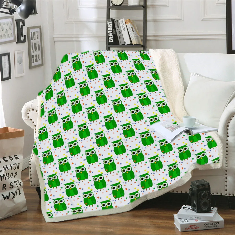 3D милое одеяло с изображением совы кофейных зерен с принтом Шерпа флис микрофибра одеяло животное Манта для детей и взрослых