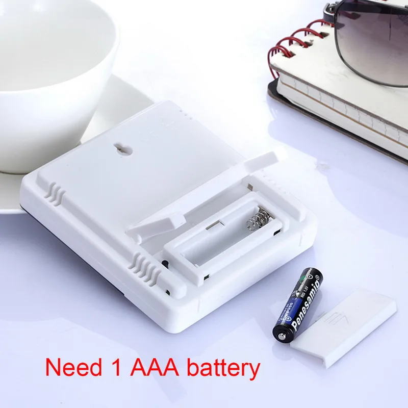 Описание продукта: Цвет: черный и белый 1. Функции температуры и влажности: с температурным диапазоном от-10 °C до + 50 °C и влажностью 10% 99% относительной влажности, показания температуры и влажности показывают непосредственно 2. Функция времени: кроме основного отображения времени, этот элемент также имеет будильник и календарь (месяц и дата) 3. Функция памяти: при нажатии кнопки памяти, он может отображать память температуры и влажности максимум и минимум 4. Простой Дизайн: с маленьким кронштейном на задней стороне и общим весом около 97 г, его легко разместить и носить с собой 4. Работа от аккумулятора: требуется 1 батарея AAA (не входит в комплект) Технические характеристики изделия: