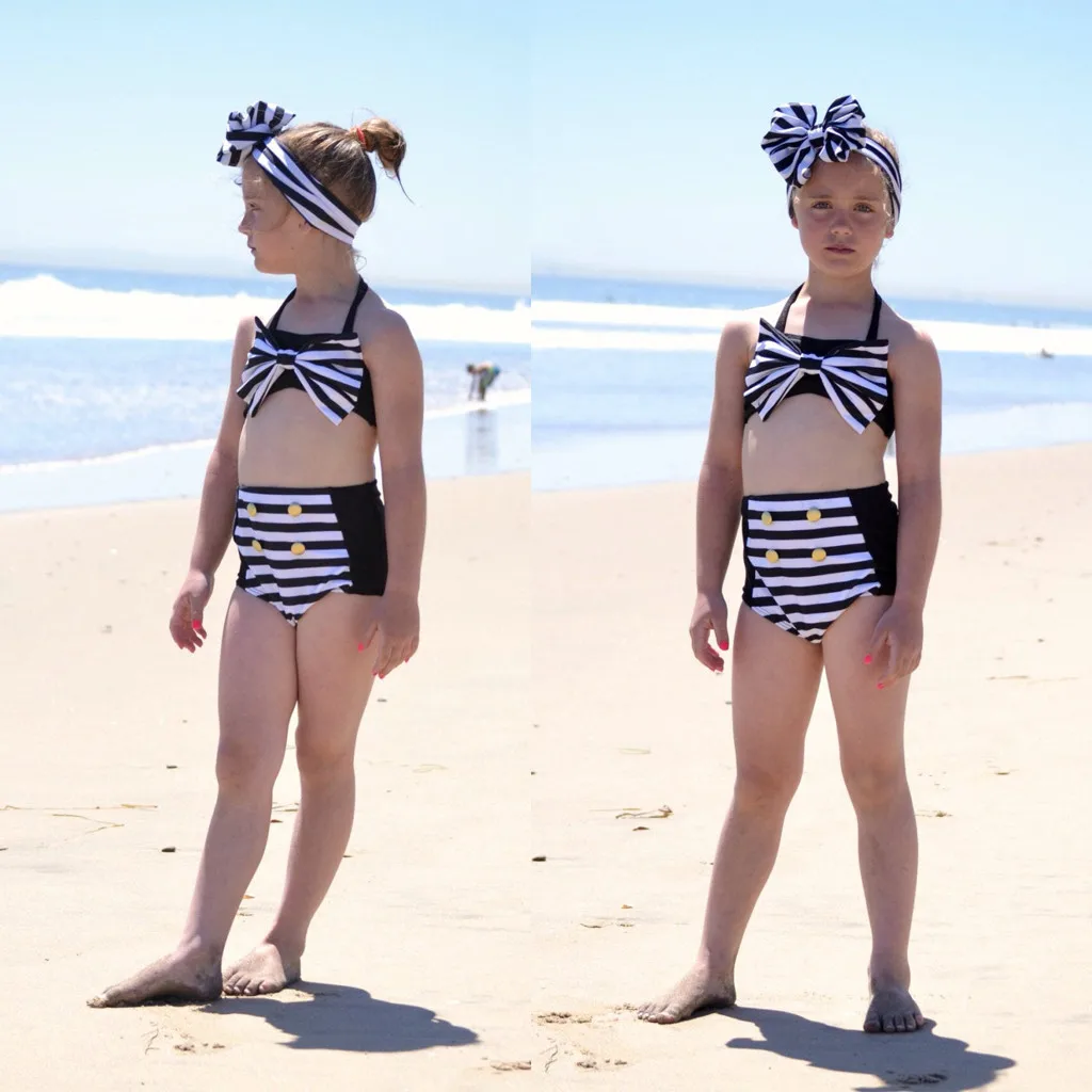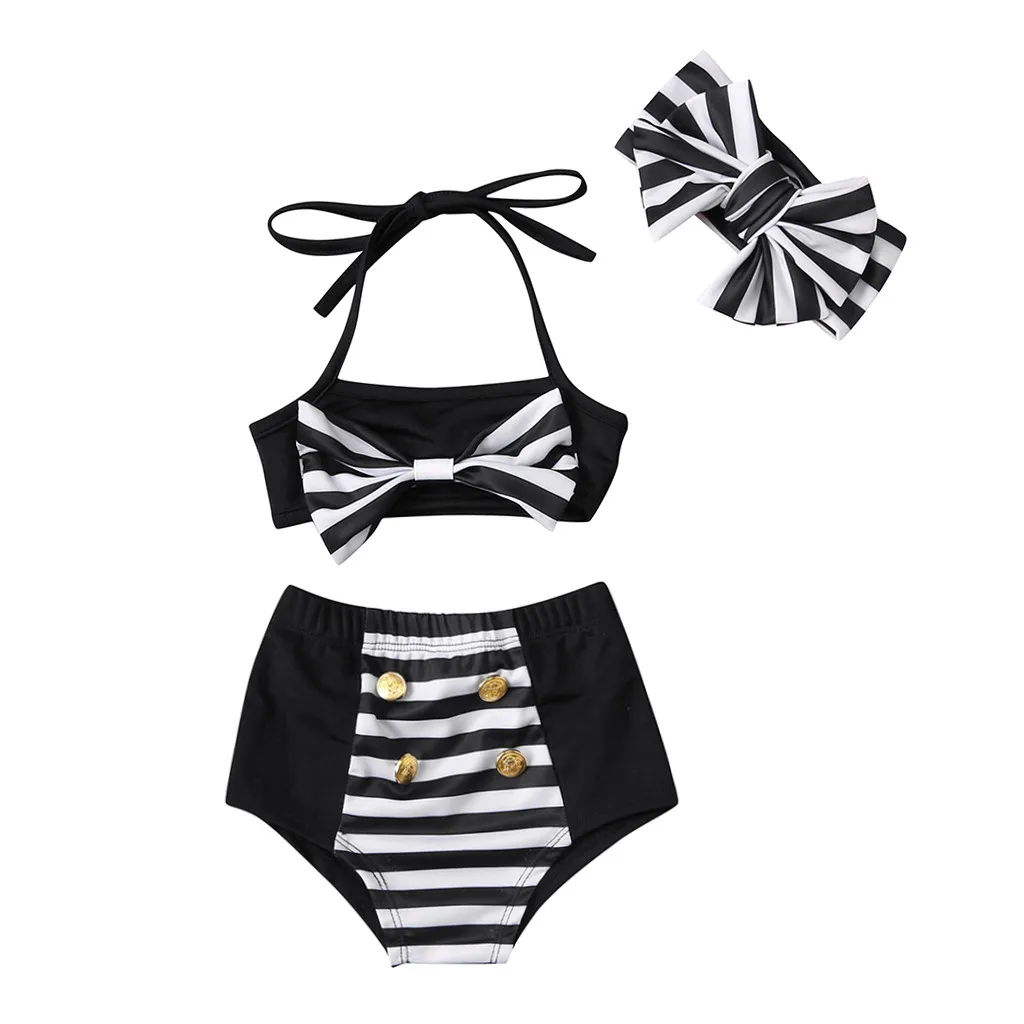 Комплект из 3 предметов для маленьких девочек; Топы в полоску и шорты; Купальный костюм; Комплект бикини