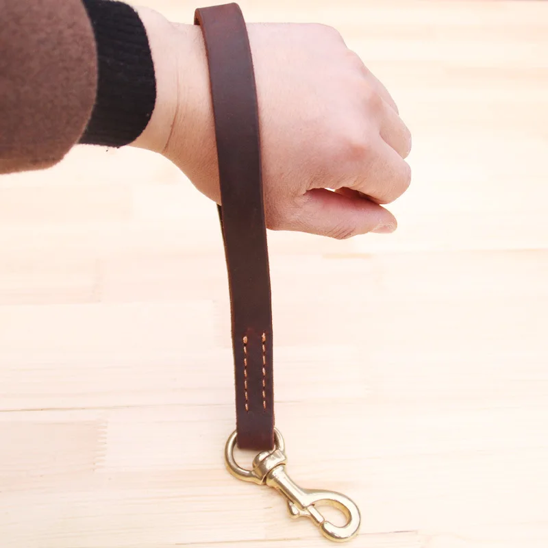 Material:Real Leather and Copper hook Color:Brown Specifications: Leash Width 1.8cm/0.70" ,length 27cm /10.62" Description: Genuine Leather Short Dog Leash for German Shepherd Golden Retriever Medium Large Big Dogs