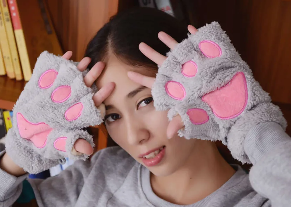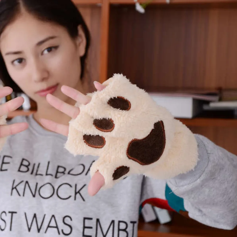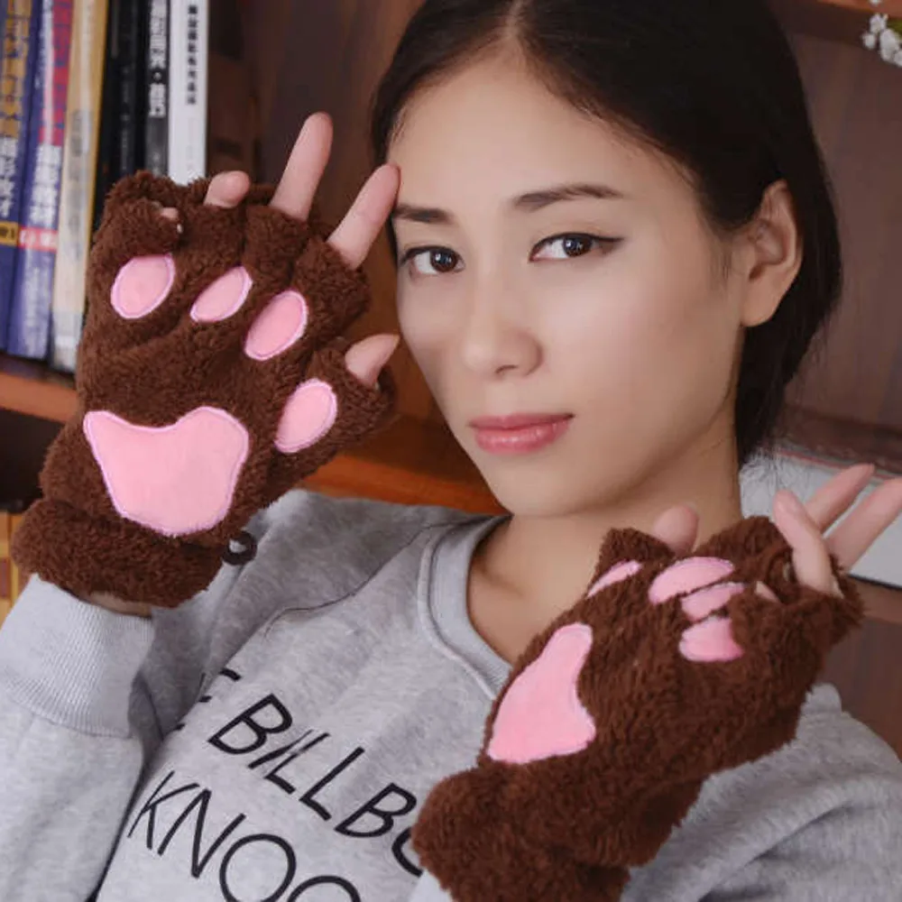 Бархатные утепленные теплые перчатки с открытыми пальцами
