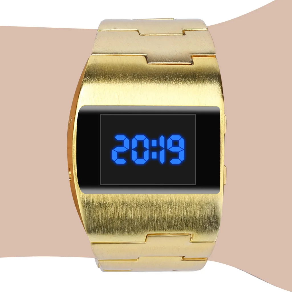 Светодиодные крутые модные красивые стальные монохромные цифровые электронные часы с широким циферблатом