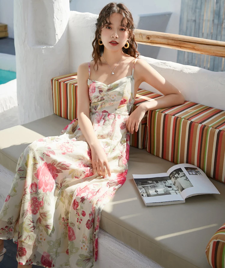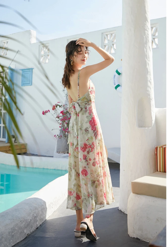 Новое поступление пляжных платьев с принтом для женщин 2020 летнее офисное сексуальное платье миди с открытой спиной для отдыха D02404K