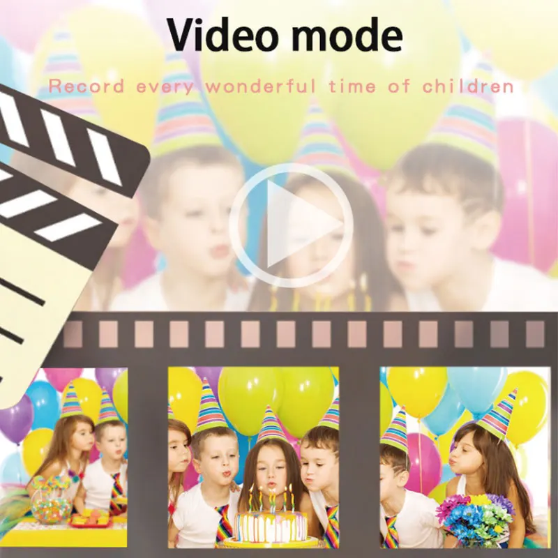 Особенности: Экран 2,0 дюйма. Маленький, ослепительный дизайн. Ручной комфортнее. Простой в использовании дизайн. Больше подходит для детских привычек. Долгий режим ожидания, полный электричества. Технические характеристики: ЖК-дисплей: TFT2 дюйма Сенсор: 12 мегапикселей Линзы: линзы 1G 3 P Диапазон фокусировки: 0,5 м-бесконечность: Зум: 4x цифровой зум Сцены: авто, Ночной портрет, Ночной пейзаж, пейзаж, спорт, вечерние, пляж Рамка для фото: Поддержка Размер изображения: формат-JGP, определение-VGA-1 м, 2 м и т. Д. Видео: формат-AVI размер-QVGA, VGA, 720 P 1080 P, частота кадров-30 кадров в секунду Продолжить съемку: вкл/выкл Режим захвата: Выкл., 2 секунды, 5 секунд, 10 секунд Баланс белого: Авто, дневной свет, облачно, лампы накаливания, флуоресцентные Вспышка: авто, вспышка вкл., анти-красный глаз, вспышка ВЫКЛ. Резкость: стандартная Качество изображения: супер тонкий, тонкий, стандартный Автоматическое отключение: автоматическое отключение Язык: несколько языков (китайский, английский, японский, корейский, русский и так далее) Аккумулятор: 400 мАч-интерфейсная карта, максимум 32 Гб tf-карта Упаковочный лист: 1 * Камера 1 * кабель для передачи данных 1 * ремешок 1 * Руководство пользователя