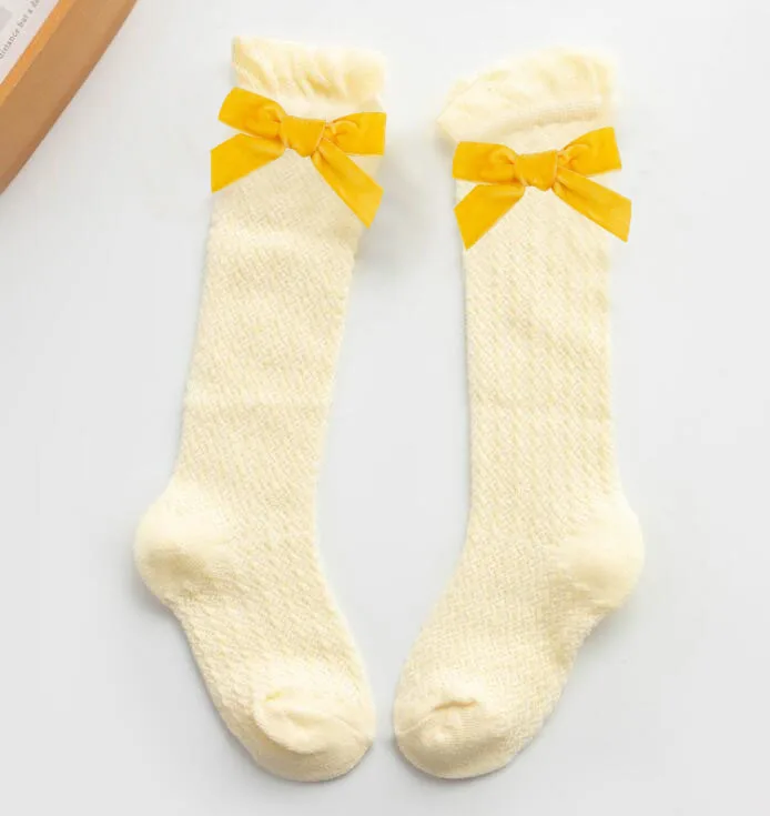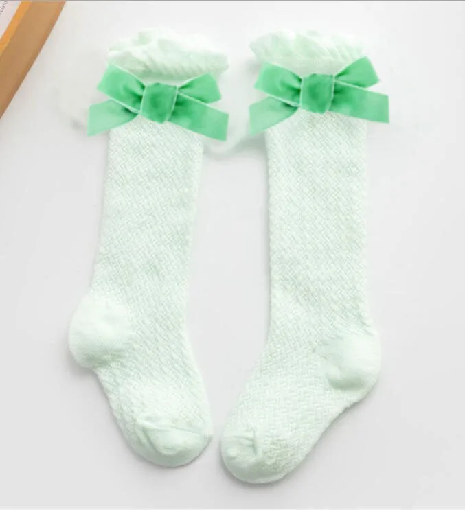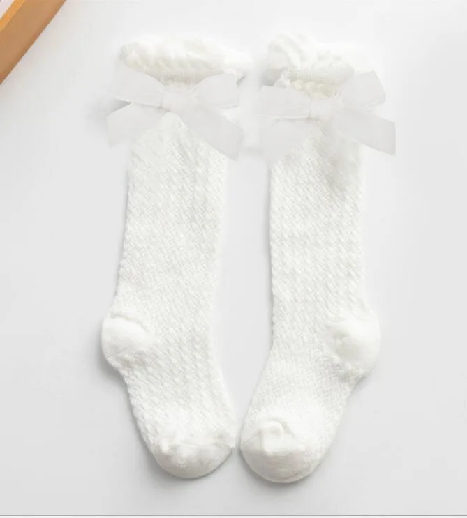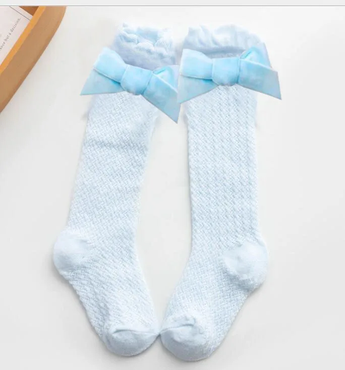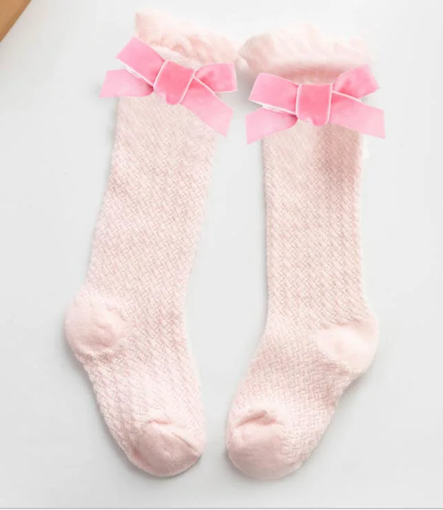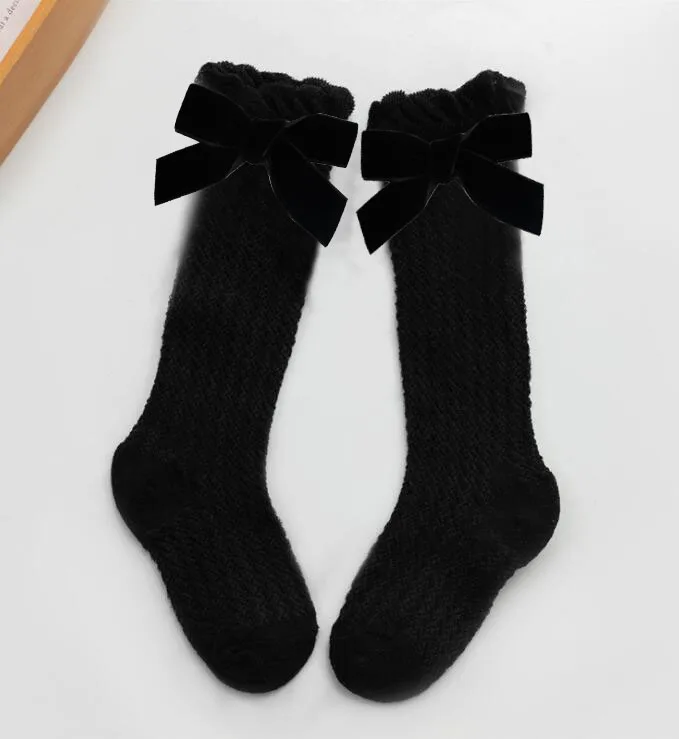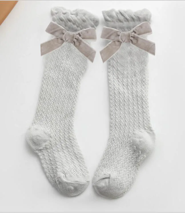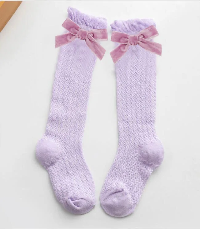 Новые бархатные носки для маленьких девочек с бантиками хлопковые дышащие носки до колена для новорожденных носки принцессы для малышей 1 пара/2 шт.