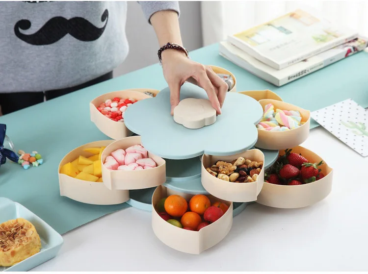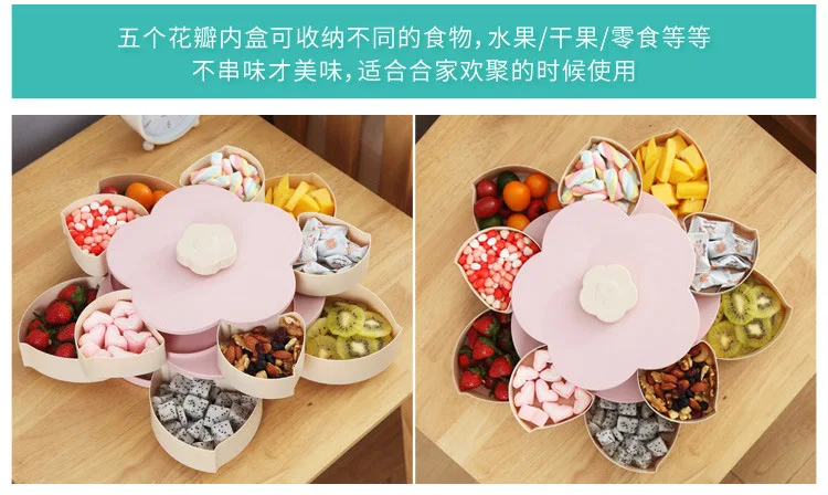 Креативная коробка для конфет с лепестками, коробка для хранения еды для перекуса, чайный столик для гостиной, тарелка для семян дыни, вращающийся чехол с гайкой, Домашний Настольный Органайзер