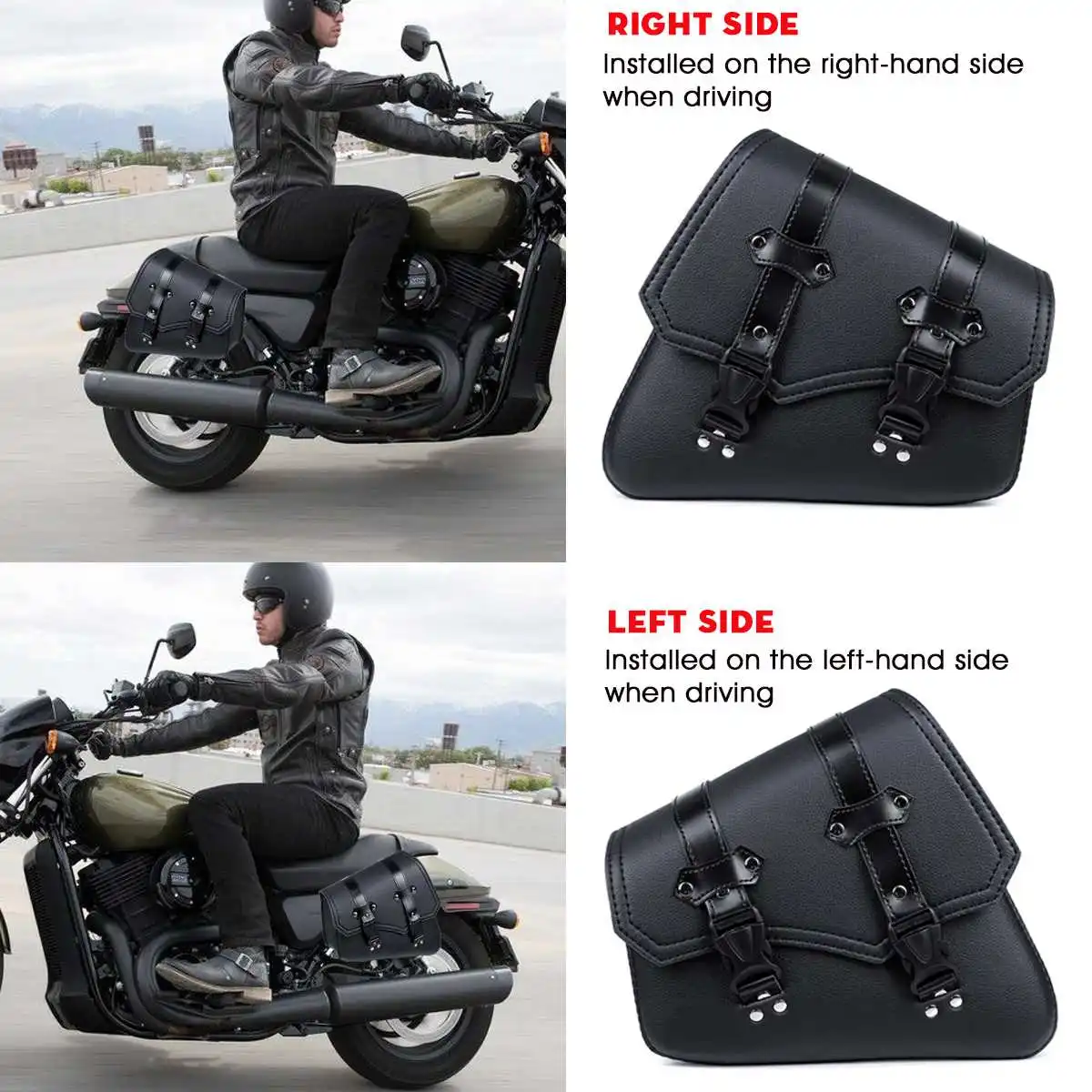 Универсальная мотоциклетная Сумка-седло с левой/правой стороны черного цвета из искусственной кожи