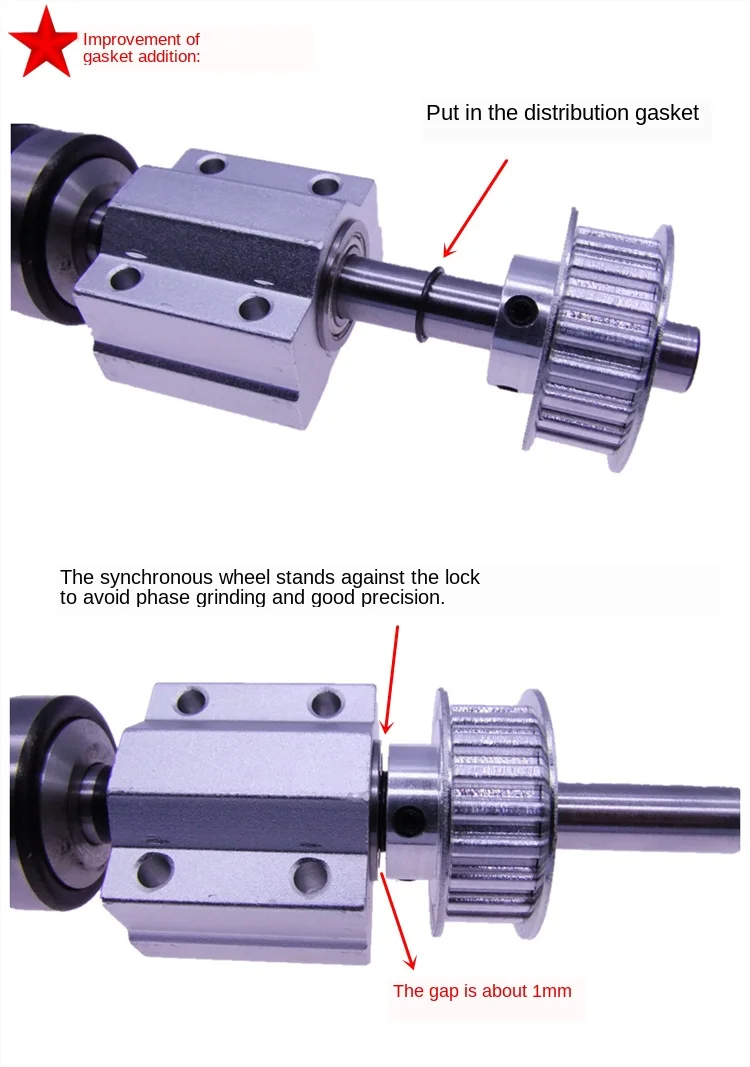 Прокладка добавлена между Ползунком и синхронным колесом, изолируя 1 мм для плотной фиксации.