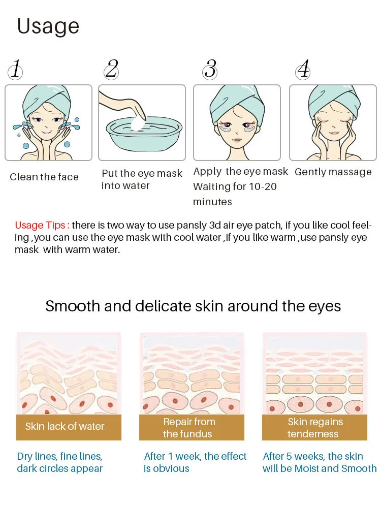 Наслаждайтесь 20 днями спа-процедур Так что вы можете получить две недели, чтобы получить потрясающие результаты. Название: сушеная маска для глаз Firstsun freeze Характеристики: 60 шт. Срок годности: 3 года Подходит для кожи: любой Особенности: Анти-против мимических морщин Высокими антиокислительными свойствами Анти-старение Nourish/увлажняют Решить 4 основные проблемы, связанные с этим Темные круги Мимических морщин Против мешков под глазами, От жирного блеска Посылка Введение: Первая маска для глаз с сублимацией, восстановленная на рынке, коллагеновая маска для ухода за кожей, маска для глаз разделена на 3d-сублимацию и эссенцию, маску для глаз, сухую и влажную комбинация, двойную мембрану, точное проникновения, лифтинг и разглаживание морщин. Основной ингредиент: гиалуроновая кислота, гидролизованный коллаген. Безопасность продукта: чистый экологичный нулевой уровень коррозии, без аромата, без добавки. Подходит для беременных, чувствительных мышц и неустойчивой кожи