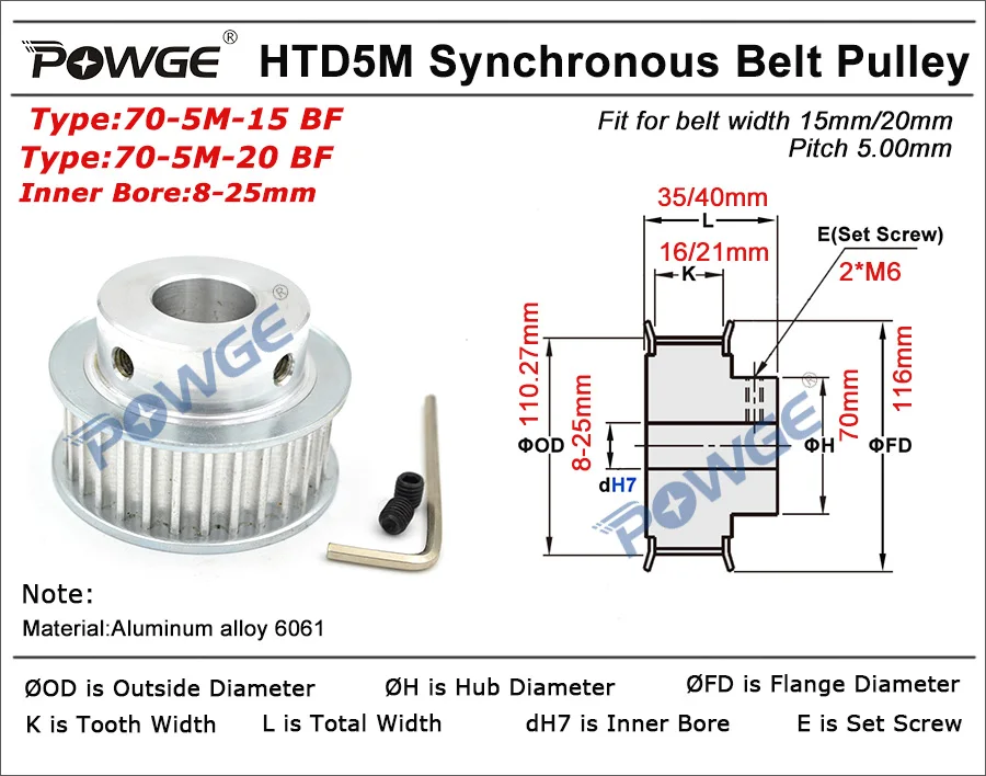 Дуговой зуб из алюминиевого сплава70 зубов5 м Синхронный шаг шкива Timimg 5,00 ммДиаметр 10/12/14/15/16/17/18/19/20/22/25 мм70-5M-15 BF и 70-5M-20 BFДляШирина 15 мм/20 ммHTD 5 м Синхронный ремень 70 зубьев 70T HTD5M шкив ремень лазерная гравировка CNC машина