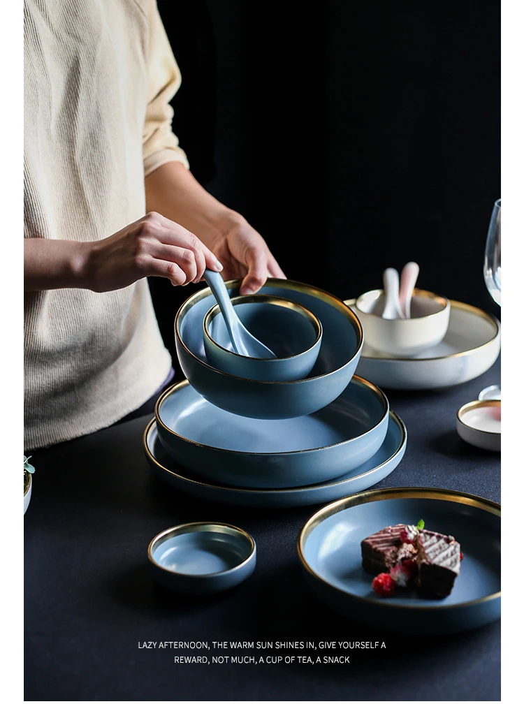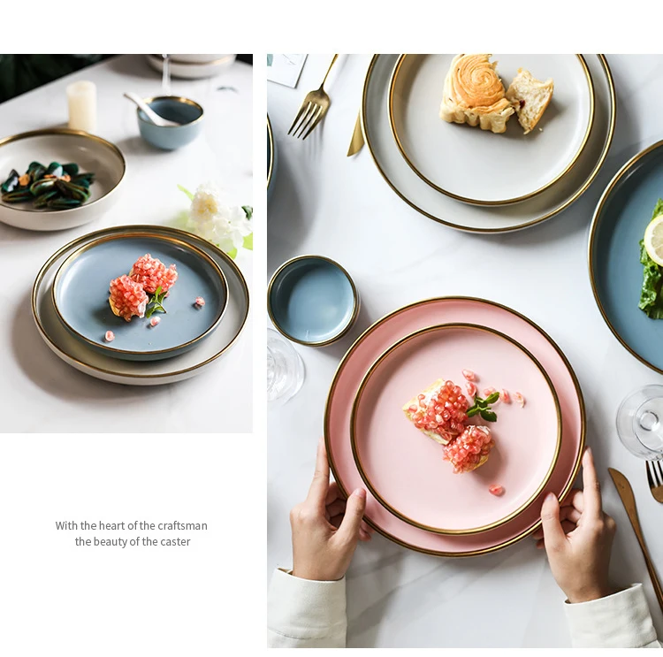 Простой стиль керамические тарелки с золотым ободком блюдо для еды в скандинавском стиле фарфоровая посуда чаша обеденная тарелка набор посуды