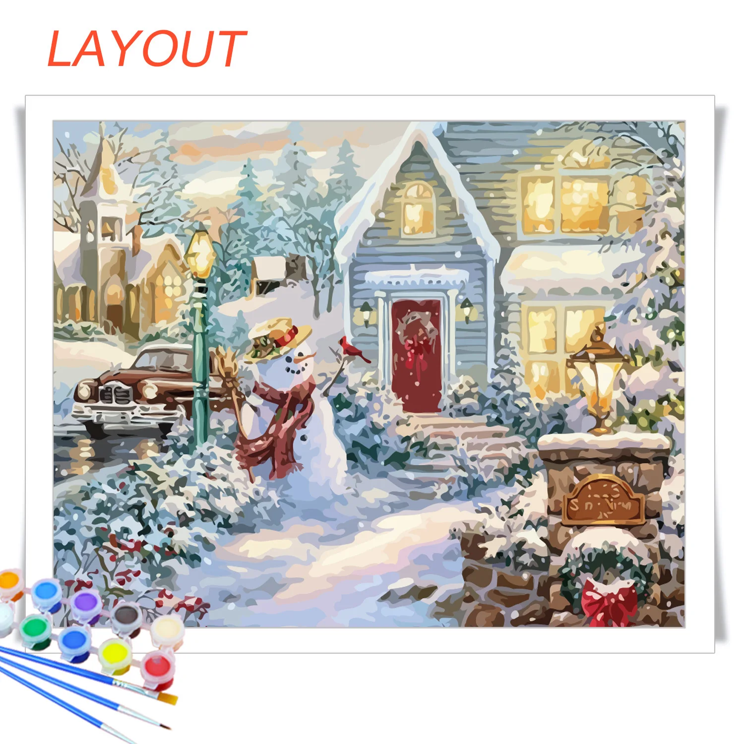 Упаковка включает:1 * Холст, 3 * кисть, 1 * Инструкция, 1 * краски, 2 * крючок без следов, 2 винта