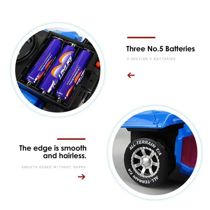 Цвета: синий, зеленый и красный отправляются случайным образом Автоматически превращается в динозавра Как только автомобиль превращается в динозавра, он издает ревущий звук Светящийся светодиодный свет Изготовлен из прочного нетоксичного плотного пластика Случайный, Веселый музыкальный трек с таким же звуком динозавра