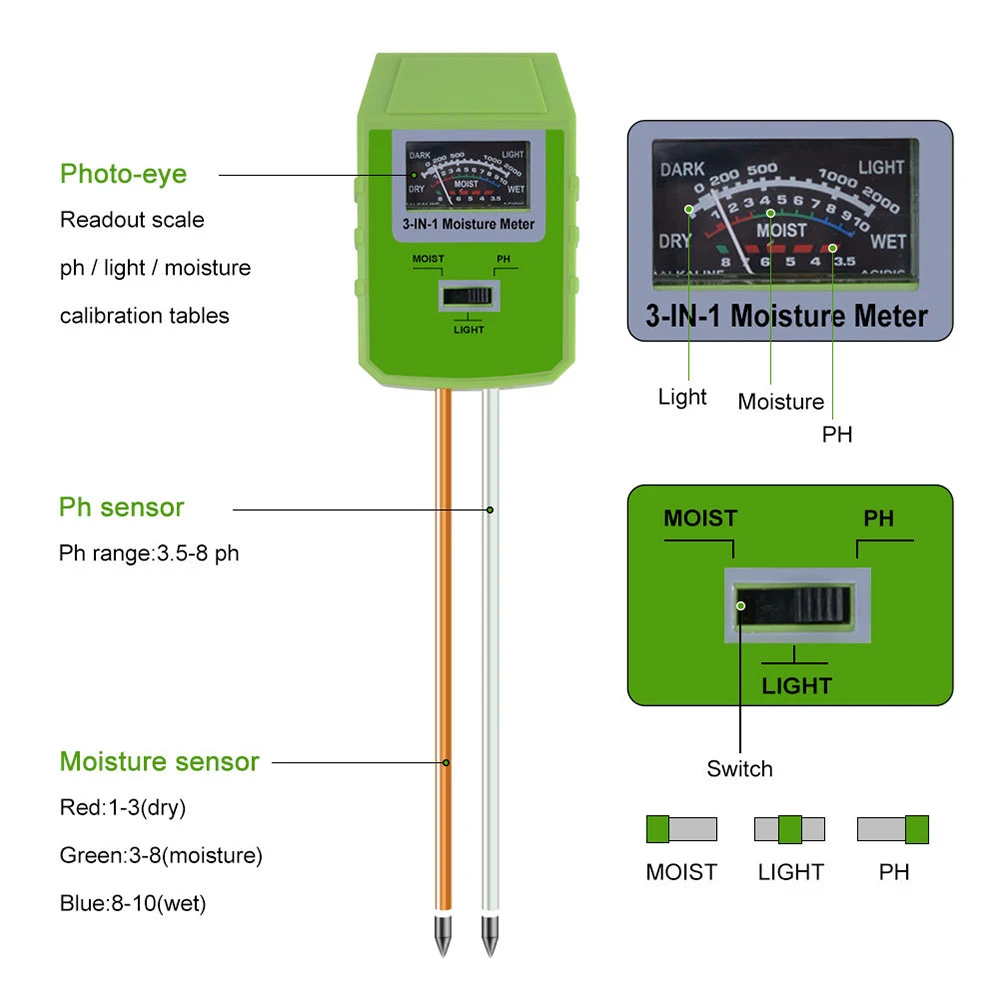 Точный 3 в 1 метр1 * измеритель pH почвы