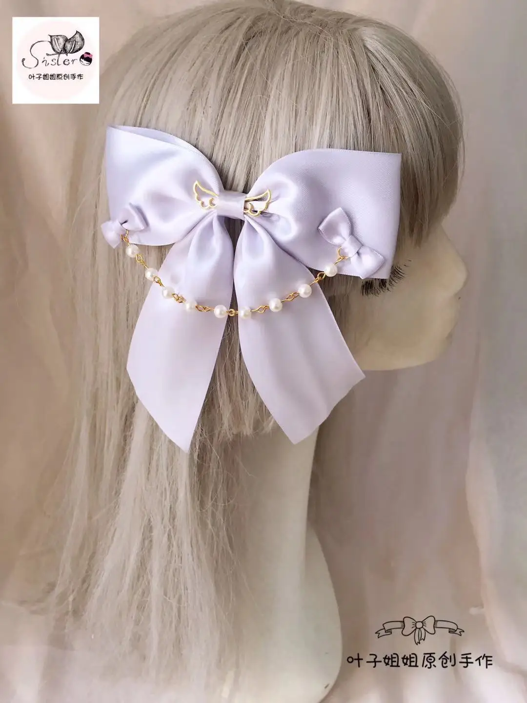 Сзади есть темная застежка. Вам нужно поменять повязку на голову. Пожалуйста, свяжитесь с вашей сестренкой.