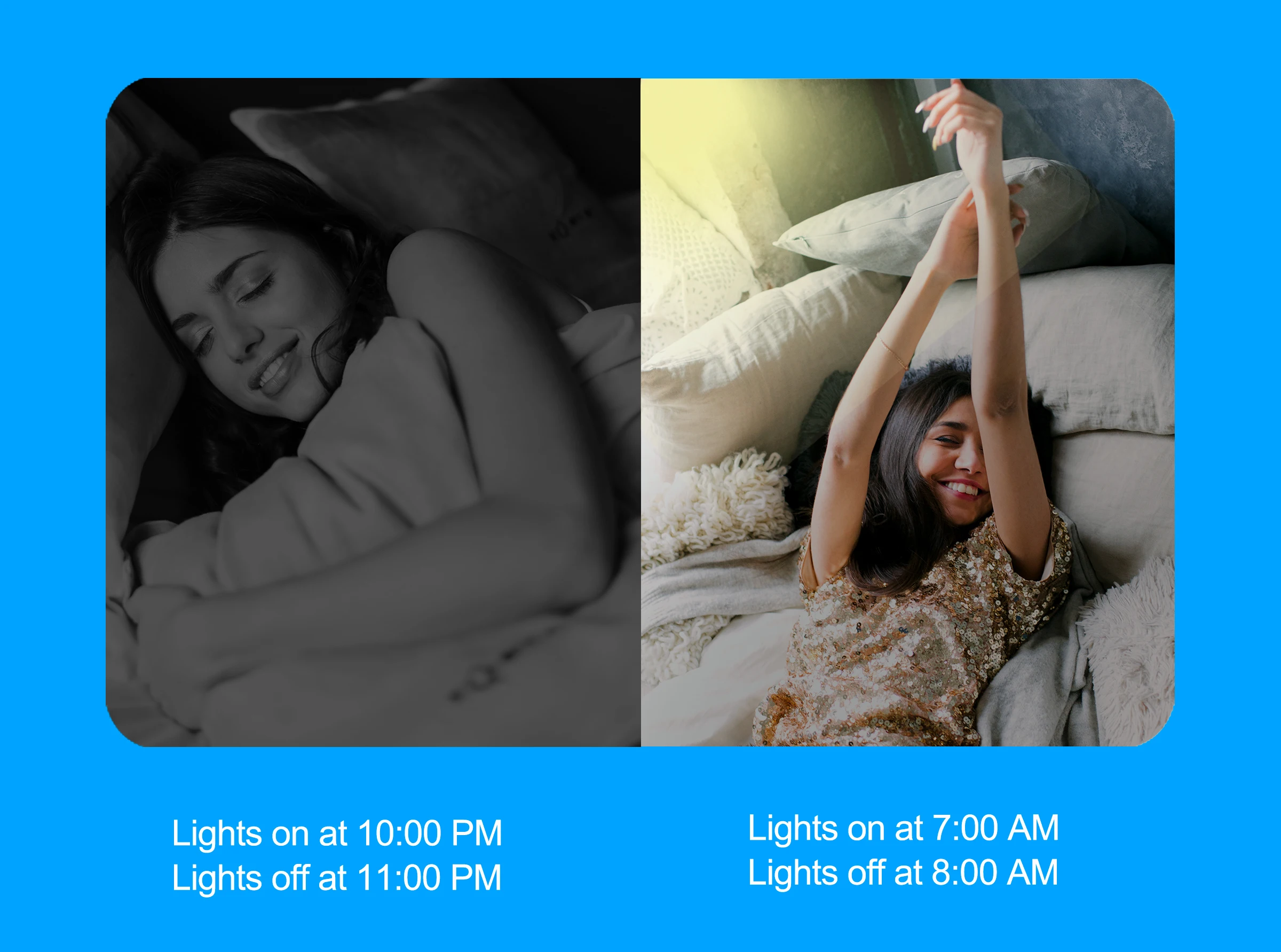 Настройка графиков времени в соответствии с вашей привычкой жить, чтобы включить/выключить свет, а также помочь вам сэкономить электричество.