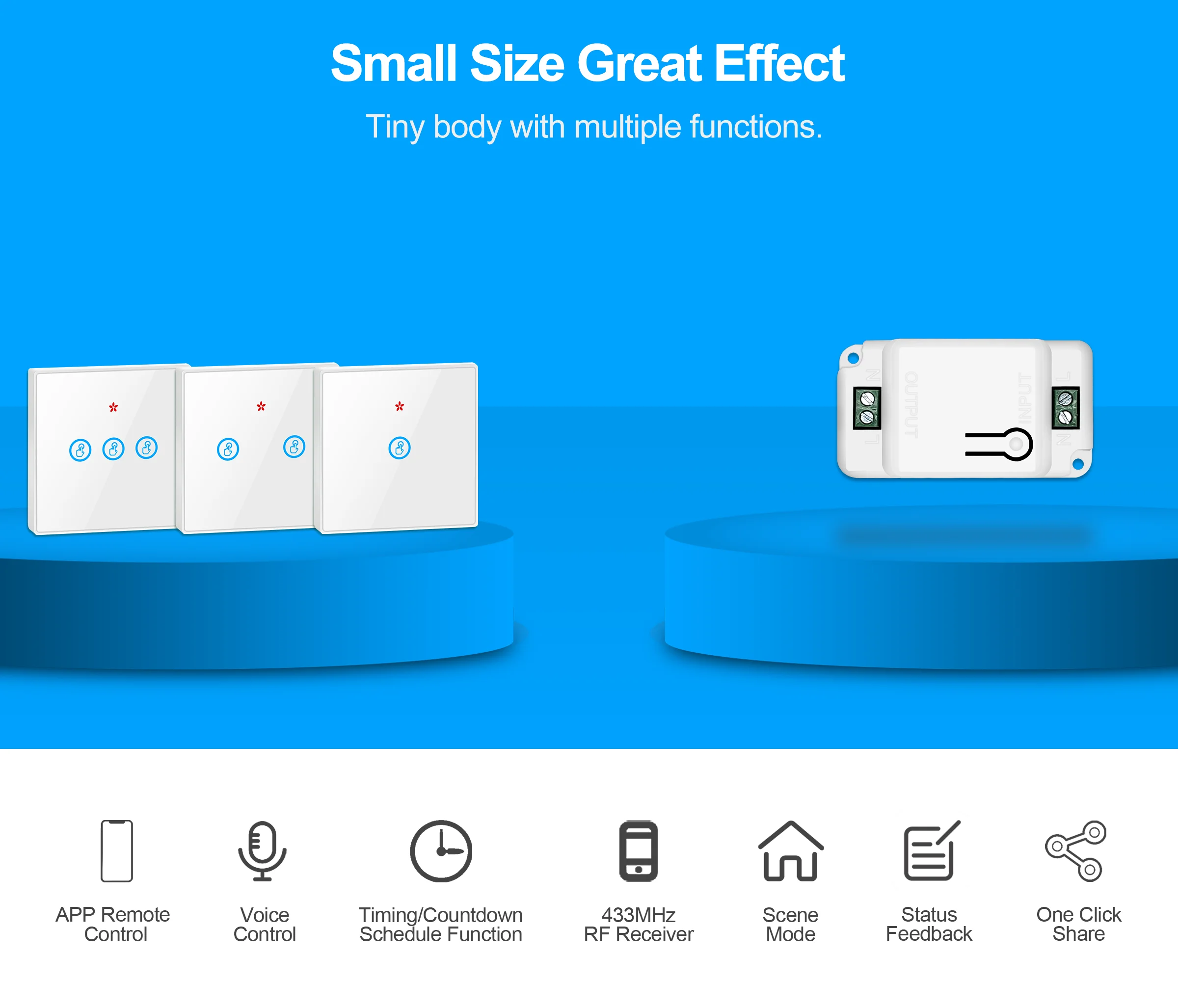 1. Радиочастотные передатчики должны использоваться с Wifi Smart 433MHz RF switch. Он не может управлять светом напрямую. 2. Для радиочастотного передатчика требуется часть CR2032, и батарея не входит в посылка. 3. Двусторонняя клейкая лента включена в посылка. 4. Пожалуйста, обратите больше внимания на варианты перед размещением заказа