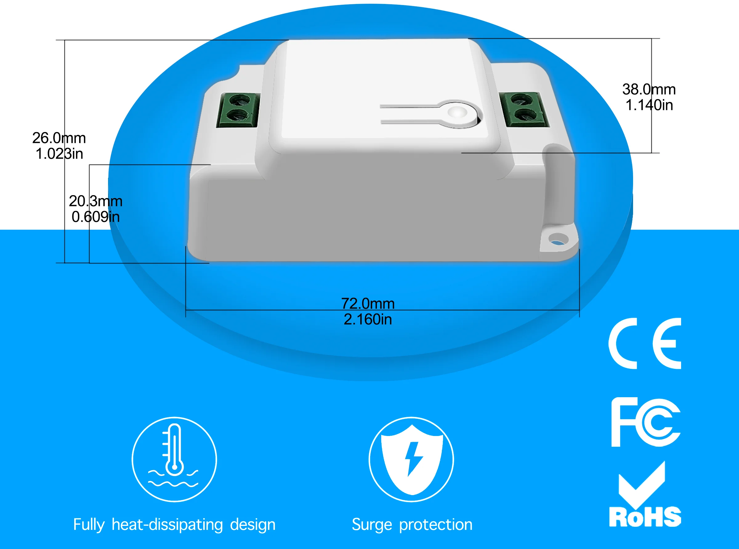 Рабочее напряжение: AC85-240V Частота RF: 433 МГц Потребляемая мощность в режиме ожидания режим по уровню поверхности: <0,3 W Мощность нагрузки: <1000 Вт Wi-Fi, Стандартный: 802,11 b/g/n 2,4 ГГц Способ кодирования: код обучения Модуляции: ASK Рабочая температура: -10 ℃ ~ + 70 ℃ Приложение: TuyaSmart/Smart Life Голосовое управление: совместимость с Amazon Alexa/Google Home Размер: 72*38*26 мм