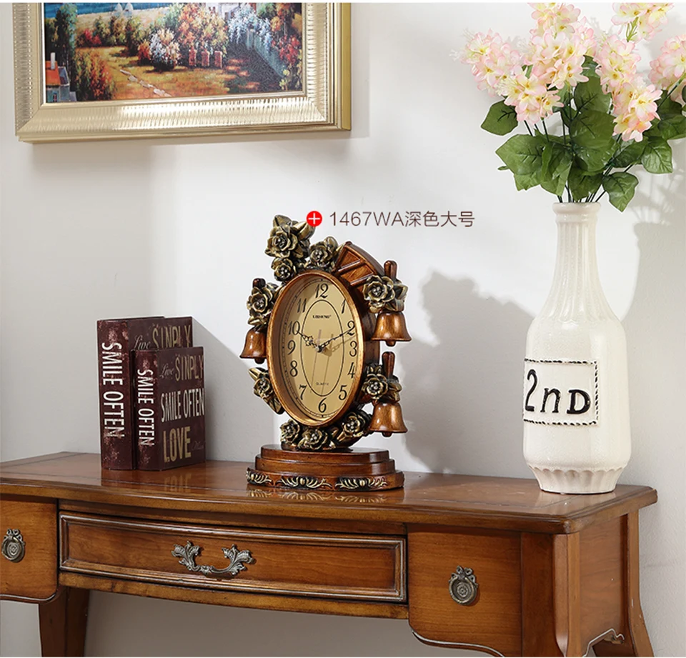 Новинка, роскошные винтажные полимерные кварцевые настольные часы, украшение дома, офисная тумба для ТВ в спальне, настольные часы, креативные европейские бесшумные настольные часы