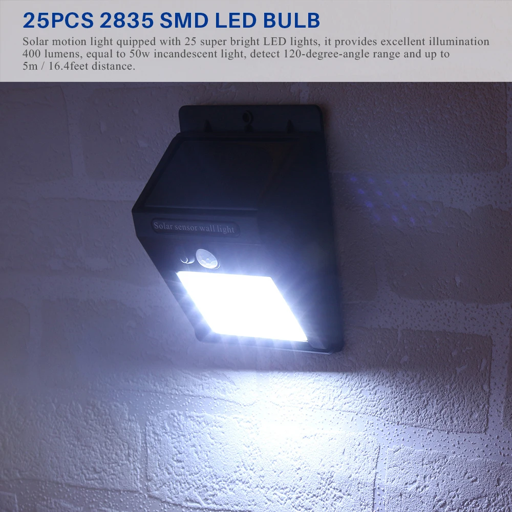 25 светодиодный светильник на солнечной батарее с датчиком движения, настенный светильник, энергосберегающий светильник s, водонепроницаемый наружный садовые прожекторы, садовые инструменты для двора