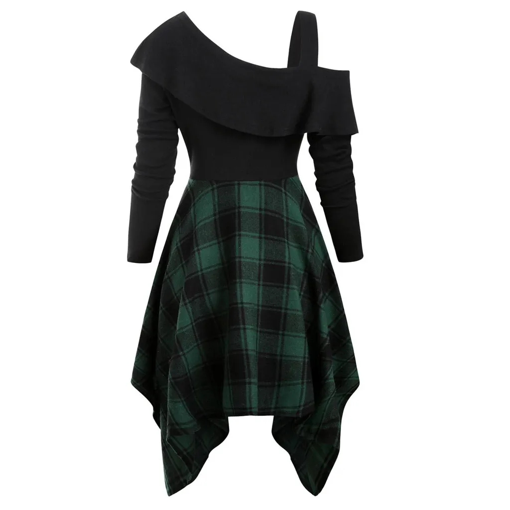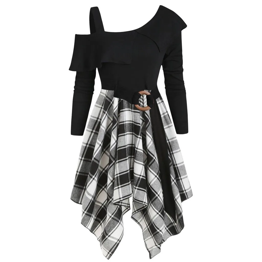 Womne размера плюс клетчатое платье с косой шеей и поясом