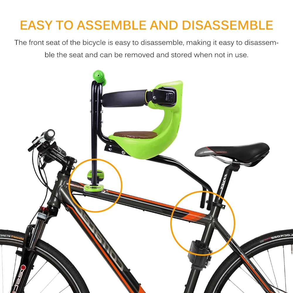 Переднее сиденье велосипеда легко разбирается и легко снимается, когда оно не используется, его можно разбирать и хранить.