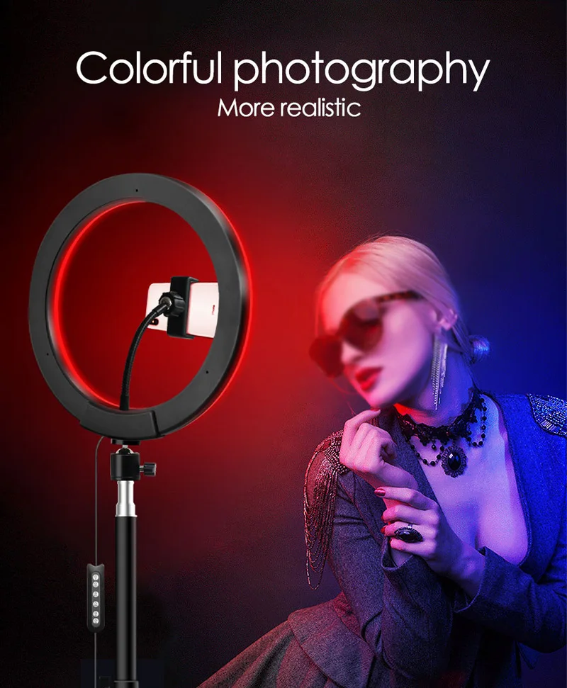 10 дюймов RGB светильник красочные Usb Красота Видеостудия Photo круг лампа вспышка для селфи с светодиодный кольцевой светильник с штатив-Трипод стойка flash СВЕТОДИОДНЫЙ