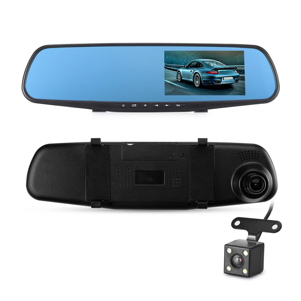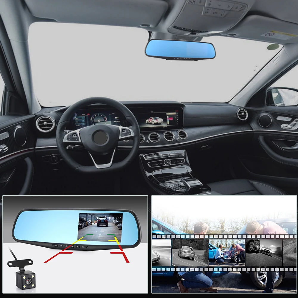 Двойная зеркальная камера заднего вида. Поддержка записи переднего изображения и заднего изображения автомобиля.
