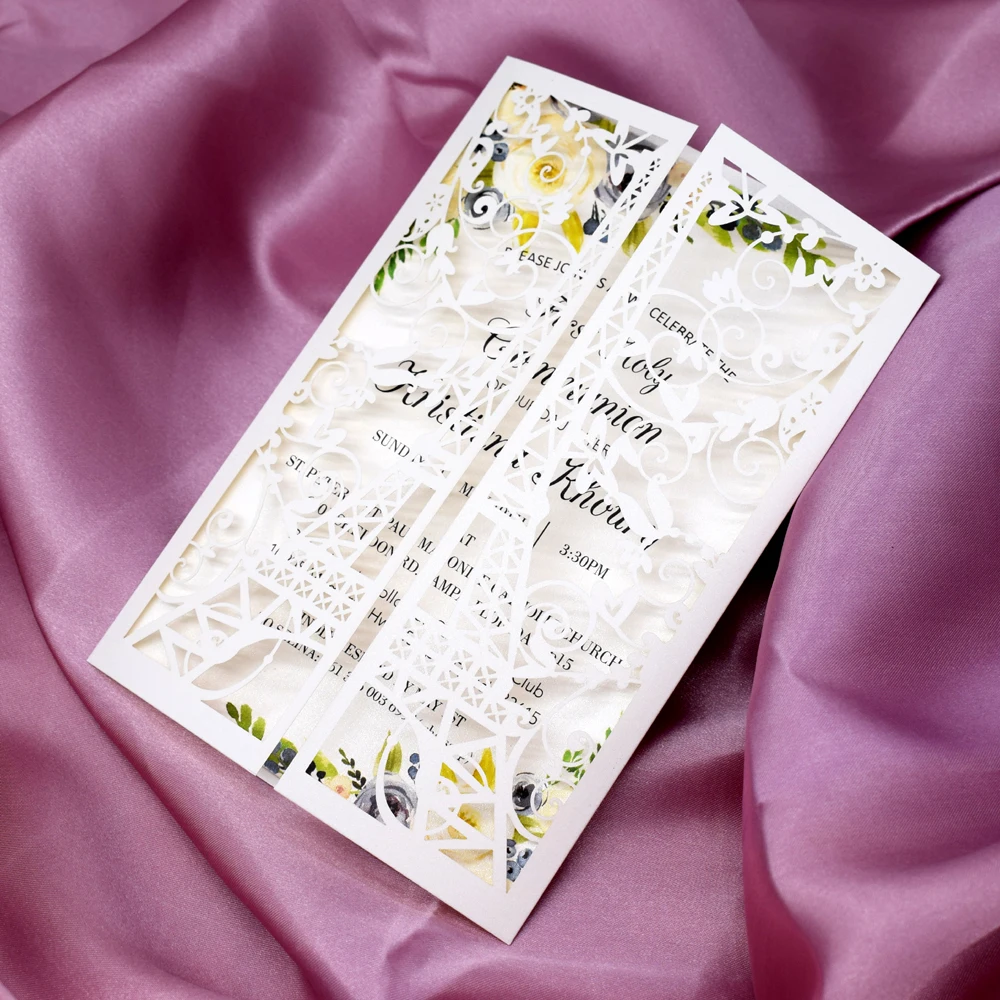 50 шт башня свадебные приглашения цвета слоновой кости для печати лазерная резка приглашения Quinceanera с конвертом