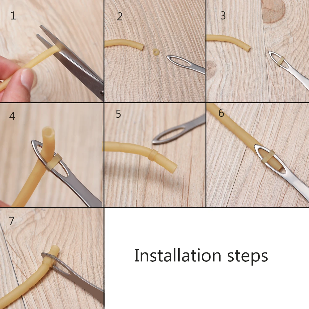 Абсолютно новый и высокое качество Материал: кожа, нержавеющая сталь Размер: как показано на картинке Цвет: Тип 1: Серебристый; Тип 2: случайный цвет Использование: Рогатка Резиновая лента галстук помощник Посылка включает в себя: 2 шт. Резиновая лента