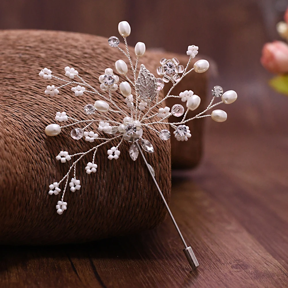 XZ08 Custom Bridal Wedding Corsage Pin Satin Groom Boutonniere Wedding Party Man's Suit Corsage