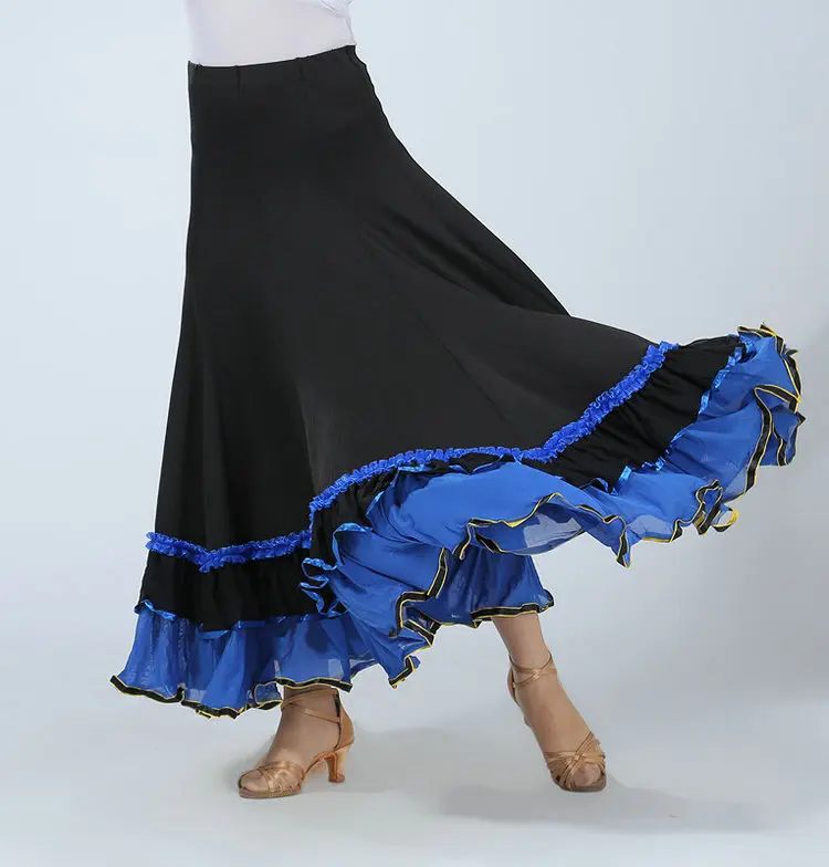 6 цветов танцевальный костюм для Фламенко юбка Бальные длинные юбки Дамский Вальс Современный стандарт Танго танцевальная одежда