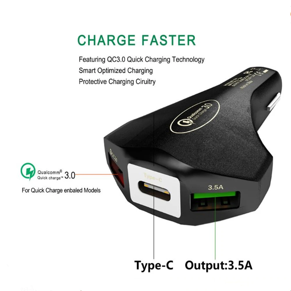 Новинка Qualcomm QC3.0 Быстрая зарядка type-c автомобильное зарядное устройство с двумя usb Автомобильное зарядное устройство 35 Вт автомобильное зарядное устройство для смартфона