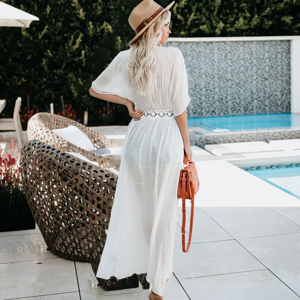 2020 новое женское парео пляжное прикрывающее сексуальное хлопковое длинное пляжное платье большого размера Saida De Praia купальник купальный костюм накидка