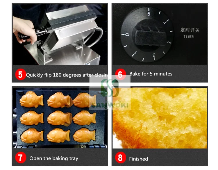 2. Вафельница характеризуется эффективным энергосбережением, долгим сроком службы и равномерным нагревом, двусторонним нагревом, более равномерным и нагреваемым, изделие равномерно окрашено, качество лучше, 3 штуки формируются за раз, а функция подсказки по времени более удобна.